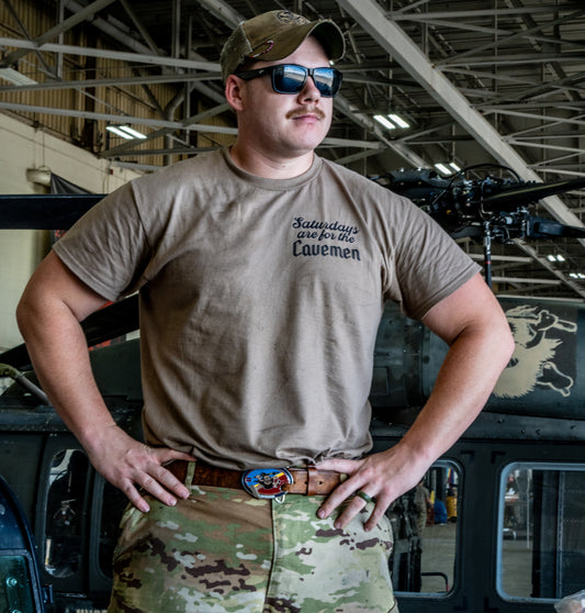 Deep in the hangar, where grease meets grit, the Cavemen come out swinging. This collection is for the crewmembers who keep the birds flying and the mission moving. Saturdays? They’re for the brutes with biceps and bi-filars in their souls. Whether you're wrenching, slinging, or just repping the tribe—this gear hits harder than a hammerfist to the turbine.